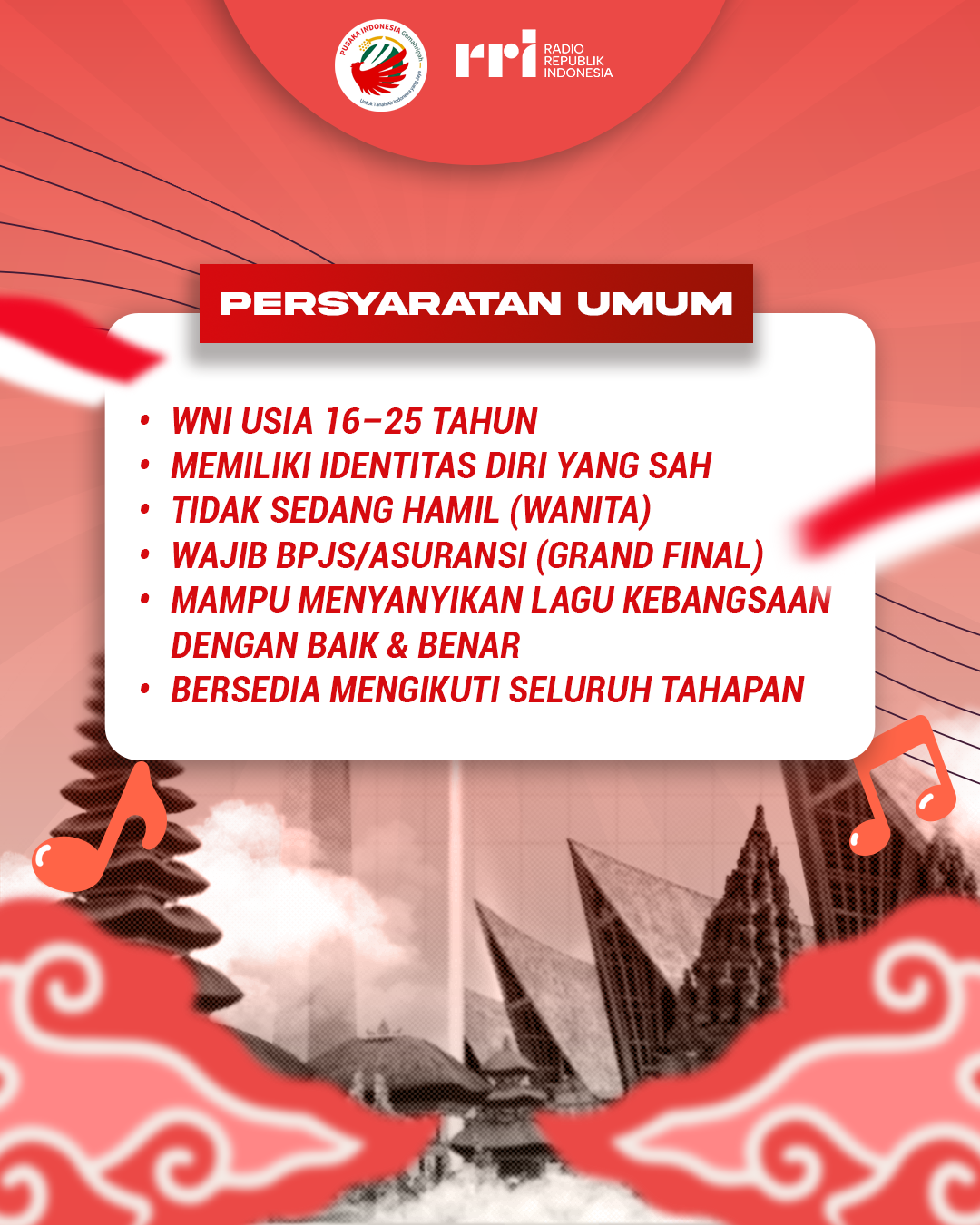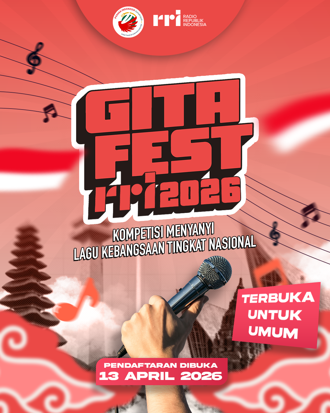 Yuk, ikuti Festival Gita Indonesia 2026 ✨ Festival menyanyi untuk generasi muda yang diselenggarakan oleh Radio Republik Indonesia berkolaborasi dengan Pusaka Indonesia sebagai wahana berekspresi menyanyikan lagu kebangsaan tingkat nasional.