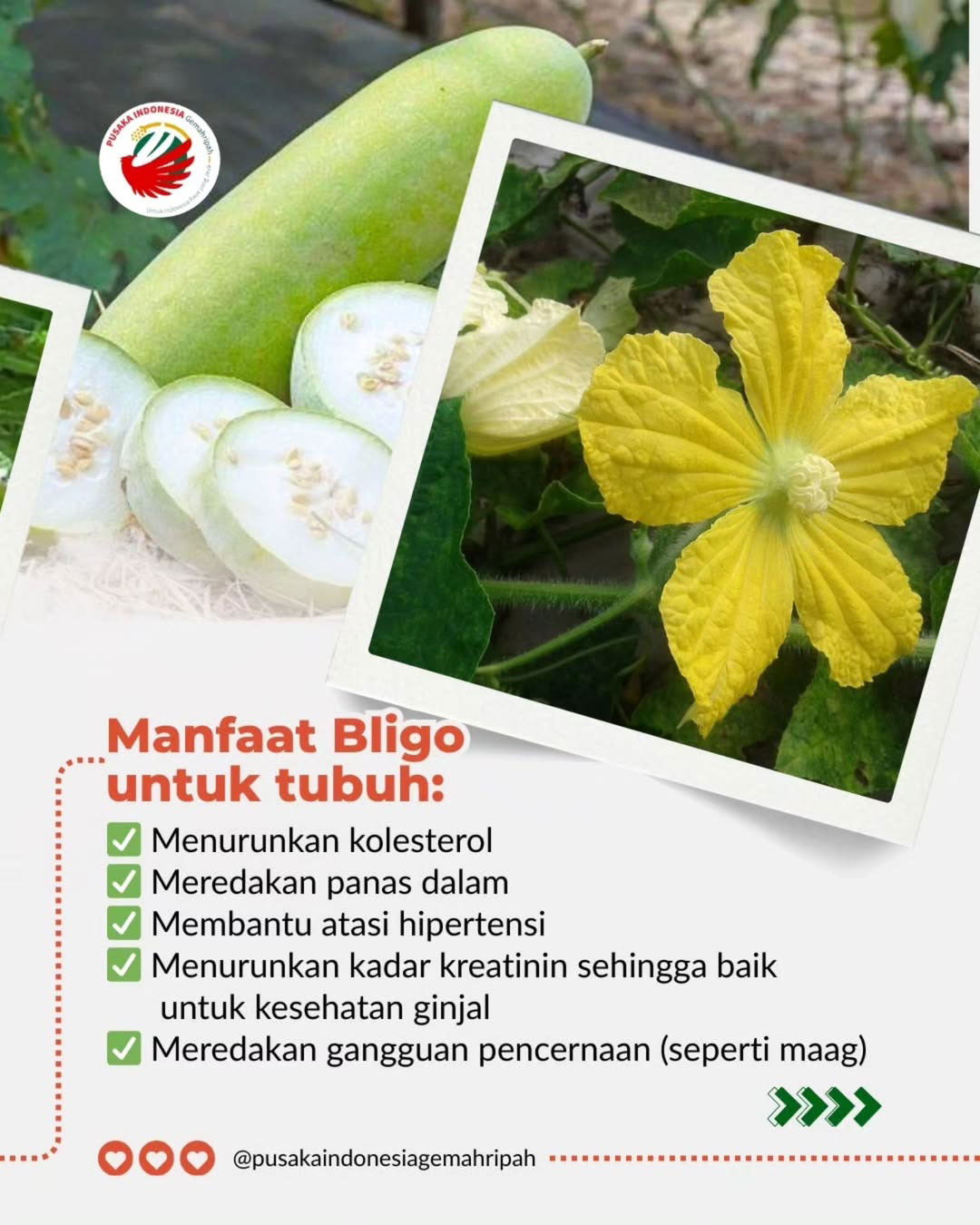 Kali ini Mimin mau kasih tahu soal bligo. Ternyata, tanaman yang kadang tumbuh liar ini punya segudang manfaat. Selain sebagai obat, bisa juga diolah jadi pangan sehat. 🍵🥙