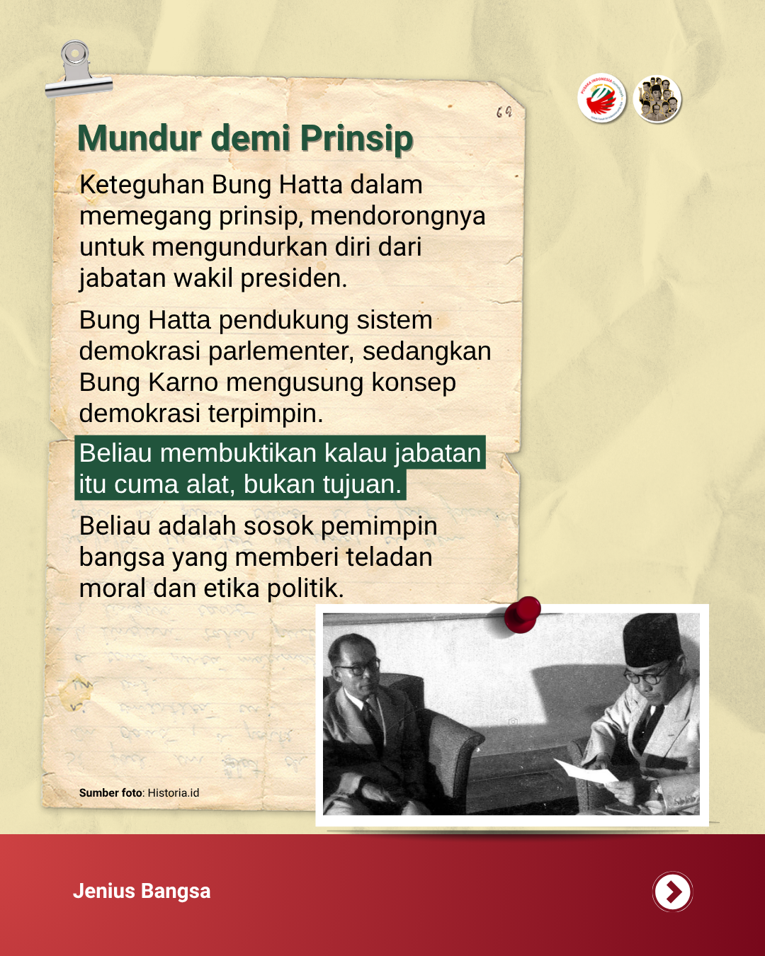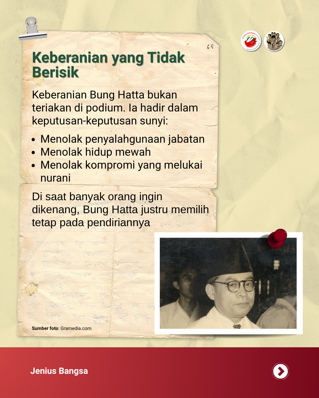 Di saat banyak orang beraninya hanya berisik mengkritik tanpa menawarkan solusi nyata, kita bisa belajar dari Bung Hatta bahwa integritas jauh lebih berharga daripada kepopuleran semata.