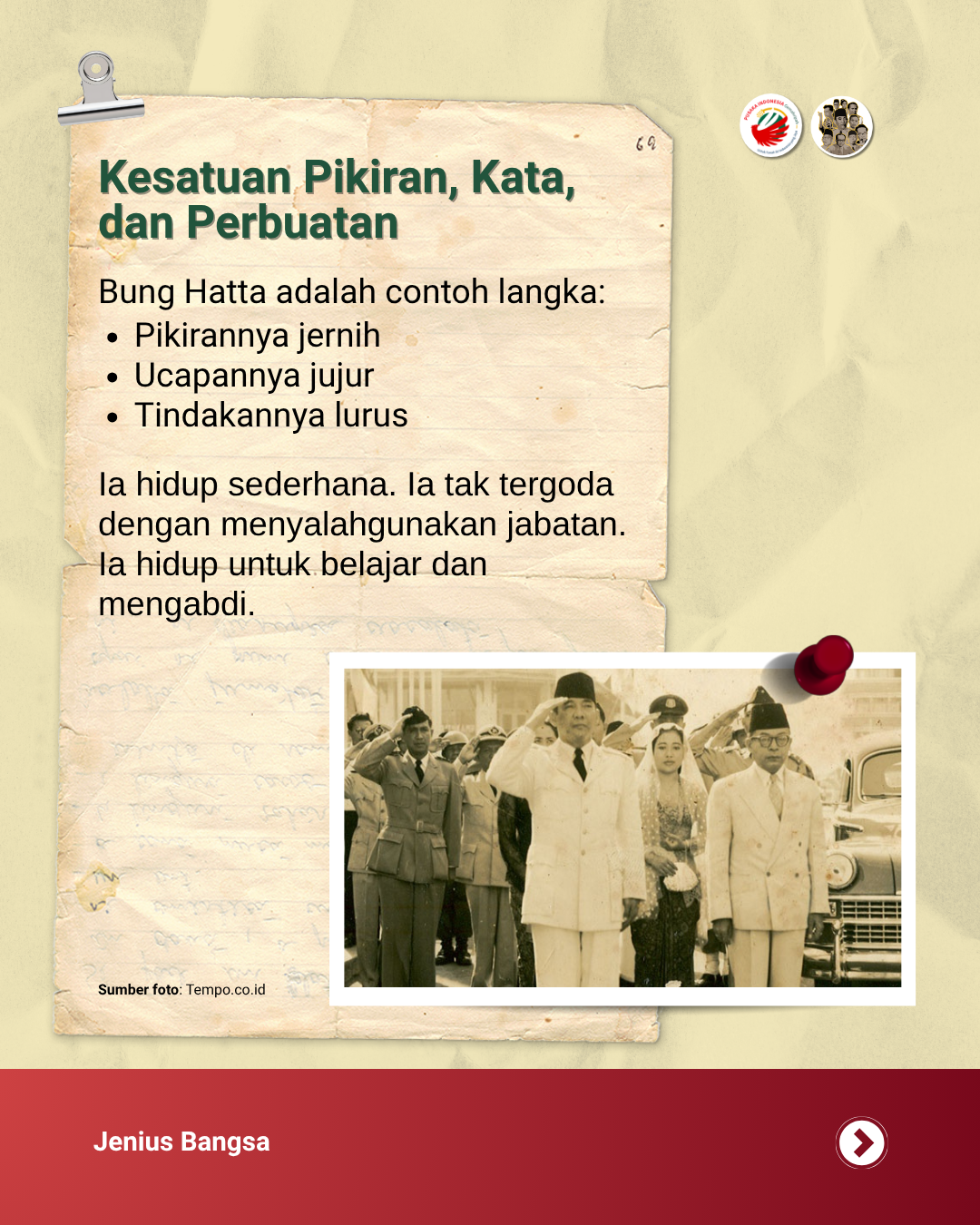 Pelajaran apa sih yang paling relevan dari Bung Hatta untuk hari ini?